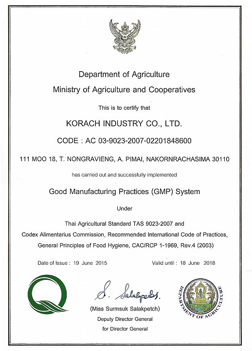 สำนักงานคณะกรรมการอ้อยและน้ำตาลทราย รางวัลโรงงานน้ำตาลทรายระดับดี พ.ศ 2558
